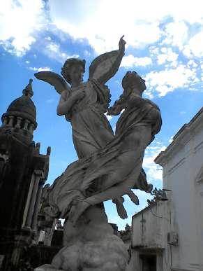 En el cementerio municipal delaciudaddeSantaestàla“EsculturaAbandonada”quedatade1889yes unadelasmásantiguasdelanecrópolis. Emula dos figuras entrelazadas que representan al ángel de la resurrecciónindicandoelcaminoalcielo en el día del juicio final y a un alma redimida. Muestran la temática del acompañamiento del alma con un estilo realista de reminiscencias barrocas. Fue hecha demármoldeCarraracontécnicade talla directa. Su autor es Federico Fabiani, un escultor genovés que vivió entre 1835 y 1914, y realizó diversasobrasparaelcementeriode Génova como así también varias necrópolis latinoamericanas. Esta