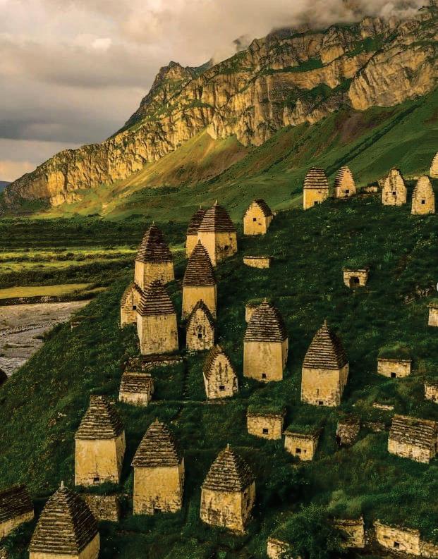 La misteriosa ciudad de los muertos de Rusia Justo en las afueras de la remota aldea rusa de Dargavs, una necrópolis medieval alberga los restos de más de 10.000 personas.
