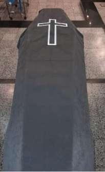 Aquí surgen las versiones. Una de ellas dice queelcadáverfuecolocadoenunataúddecristal,y otraquesolamentesecolocóunvidriotransparentea laalturadelacaraensuféretro,paraquepudieseser apreciadoporpropiosyextraños.