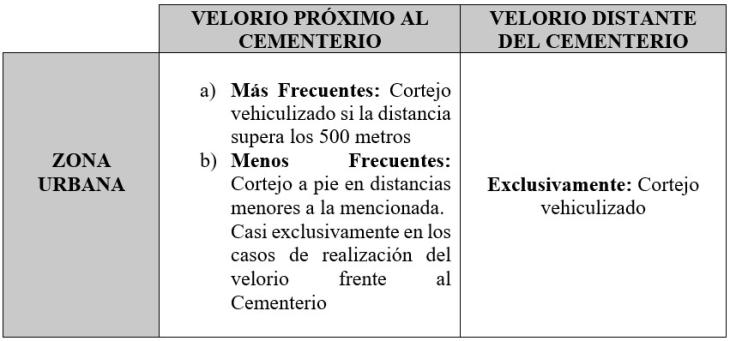 Tabla Nº 2: Variancias en el tipo de cortejo según la zona urbana, rural o periurbana y la distancia entre el lugar del velorioyelcementerio