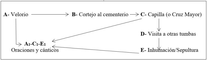 De esta forma podemos esquematizar el recorridomásfrecuentedesdeellugardelveloriodel angelito hasta el cementerio y el cortejo dentro del cementerio.