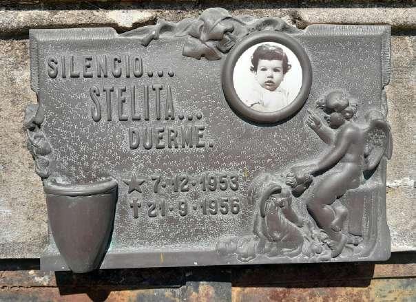 Lasletrasenrelieve,corroídasporelvientoylos años, parecen susurrar el amor inconmensurable deunafamiliaqueviopartirdemasiadoprontoasu pequeña. Nacida un 7 de diciembre de 1953 y arrebatada el 21 de septiembre de 1956, Stelita apenasconocióelmundo,perosumiradainocente quedóatrapadaparasiempreenlaporcelanadesu retrato.