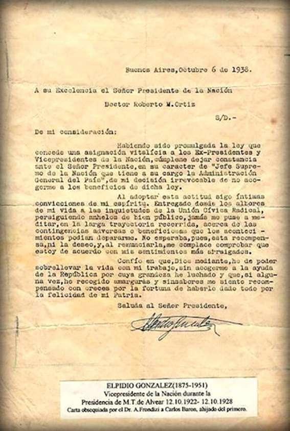 De joven se afilió al radicalismo y ocuparía diversoscargosensusgobiernos Gonzálezvioquedentrodelsobrehabíamuchos billetes de mil pesos. Él mismo contó: “Felizmente lo alcancé al señorquemelohabíadejadoyselo devolví. No lo quería recibir de vuelta,ytuvequeponermemuyserio ydecirlequenoibaapermitirqueme ofendiera así el Presidente ni nadie, por más buena voluntad que hubiera depormedio”.