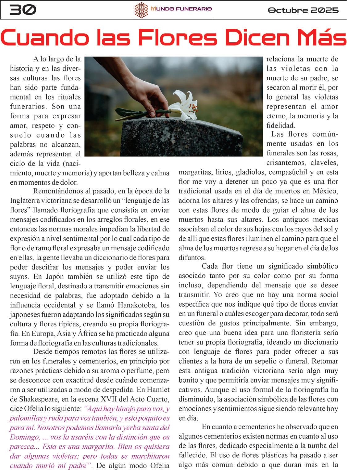 El sector funerario no solo se mueve por estructuras físicas o inversiones financieras. Se mueve por los comportamientos humanos: empatía,disciplina,solidaridadydedicación. Aligualque,encualquierorganizaciónlíder,enel universo funerario, son las personas las que marcan la diferencia. Son ellos los que transformanladespedidaenunactoderespeto,y eldueloenunmomentodebienvenida.
