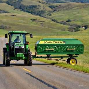 amaba el equipo de John Deere, así que un tractor John Deere dirigió la procesiónfúnebreyfueenterradoen unataúddeJohnDeereordenadopor encargo
