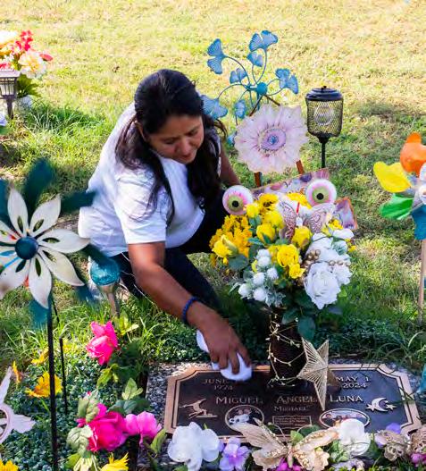 En el cementerio ella encuentra un momento de quietud en medio de un horario caótico. Ella está tratando de sacar adelante al camión de comida, y tratando de ayudar a una familia grande a hacer el luto.