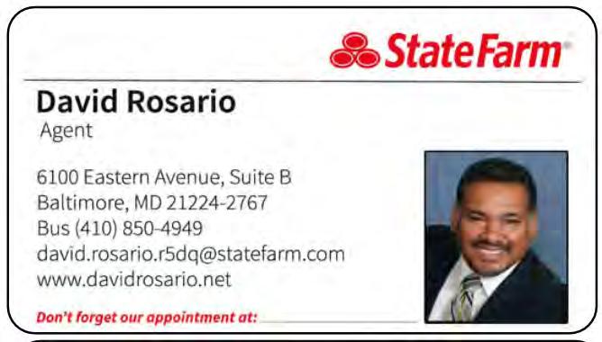 El proveedor autorizado de automóviles de Maryland Auto, David Rosario, cree que estos límites más altos crean más oportunidades para las pequeñas empresas a las que sirve en su comunidad. “Este es un gran beneficio para los dueños de negocios con los cuales trabajamos”, dice. “Límites más altos para vehículos comerciales significan más cobertura y mayor protec ción para nuestros asegurados cuando hacen su trabajo. Estas coberturas crean más oportunidades porque son necesarias para proporcionar prueba de seguro a las compañías que contratan a nuestros asegurados comer ciales para hacer un trabajo”.