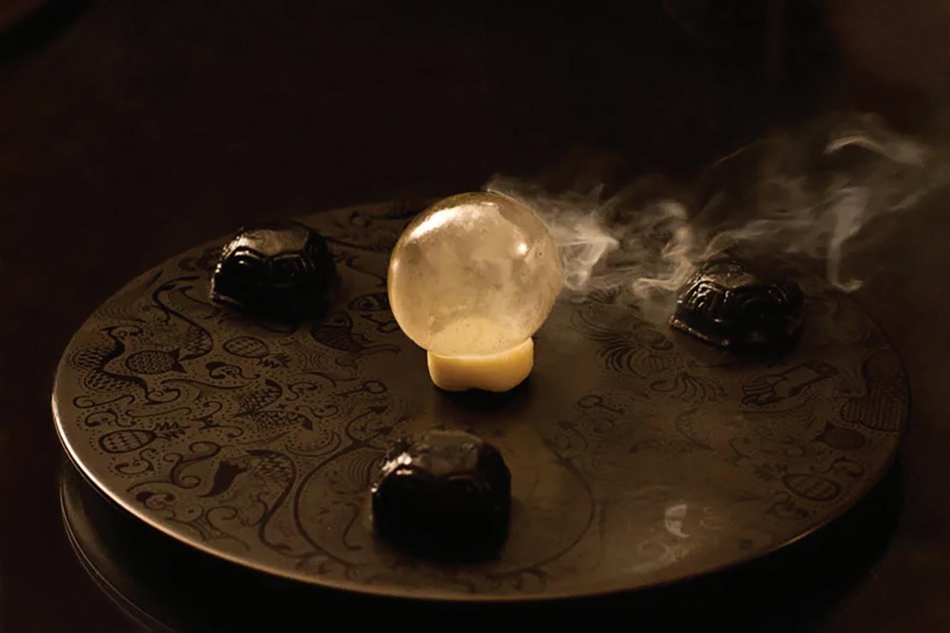 Fora da cozinha e dentro de museus, Simone Mattar faz da comida a sua arte. “A materialidade da comida, assim como a da arte, já traz cor, forma, textura, mas ela tem um diferencial: o sabor”, diz a artista e food designer. Há sete anos trabalhando com gastroperformance – termo criado pela própria –, uma reflexão sobre uma nova forma de expressão artística, que mistura gastronomia a diferentes linguagens como música, escultura e performance, Mattar já teve suas obras expostas na Alemanha, Estados Unidos, Espanha, Inglaterra, México e Brasil. Soviet Roulette é sua criação mais recente. Exposta por apenas um dia na Saatchi Gallery, em Londres, a obra continha 60 maçãs pretas e 60 maçãs amarelas dispostas sobre mesa coincidindo com o símbolo de “perigo para irradiação nuclear”. Em um jogo conhecido como roleta russa, o visitante pode interagir rodando a roleta e tirar a maçã “radioativa”, feita de plástico, ou uma maçã “boa” que, na verdade, era uma sobremesa deliciosa feita de mousse de chocolate branco com cumarú e recheio de geleia de maçã caramelada. A ideia de Simone foi criar uma loteria da contaminação, revivida mais uma vez para que o público possa refletir acerca do que os habitantes de Chernobyl vivem ainda hoje.