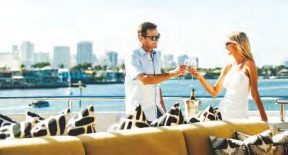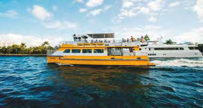 Lacapitalmundialdelanavegación Greater Fort Lauderdale es conocida como la capital mundial de la navegación a vela y la "Venecia de América" debido a sus 482 kilómetros de vías navegables interiores, que se unen a 38 kilómetros de la costa atlán ca. Este paraíso acuá co presenta oportunidades excepcionales para navegar, ya sea que sus clientes quieran alquilar un barco o disfrutar de uno de los muchos cruceros panorámicos de la zona. El Water Taxi es una forma popular de ver los lugares de interés e incluye 11 paradas en el centro de Fort Lauderdale y sus alrededores, hogar de la animada escena de compras, restauran-
