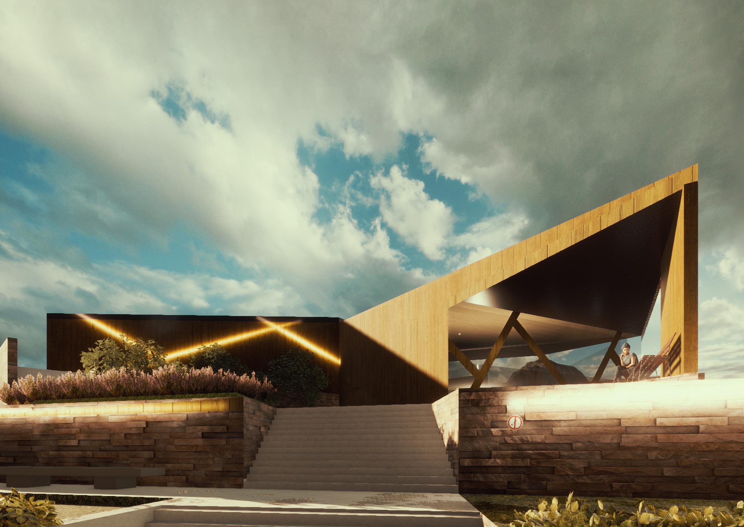 Koncertų salė yra pagrindinis centro pastatas. Jos didelis aukštis ir kampuotos stogo sistemos siekia imituoti aplink esančius kalnus, sukuriant naują žemę iš senosios.