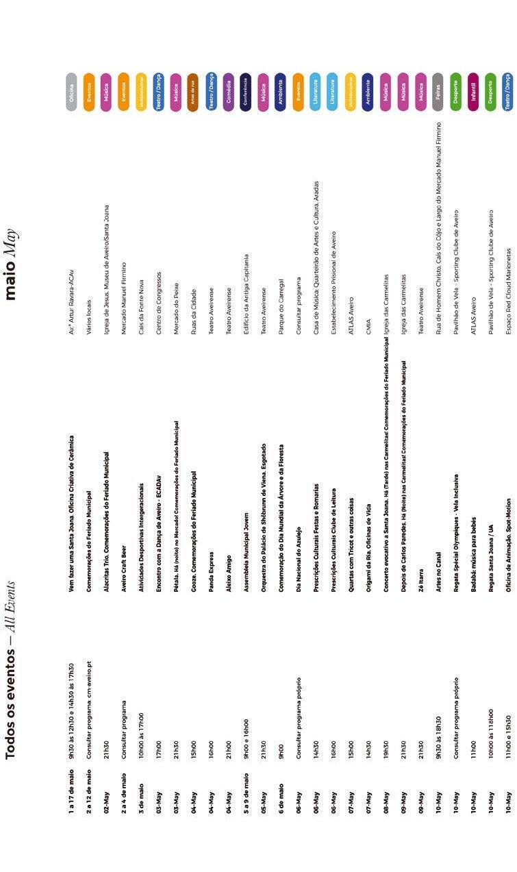 Nota de destaque para as Comemorações do Feriado Municipal no mês de Maio, com um conjunto de iniciativas diversas e relevantes, devidamente conjugadas com a Festa da Padroeira da Cidade e da Diocese de Aveiro, Santa Joana.