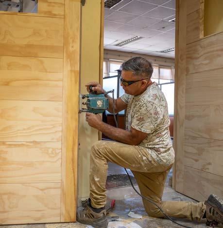 Mejora en portón de acceso vehicular y cambio de puertas de salas de clases