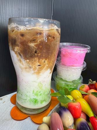 แลวนาเยลลปโปใสลงในแกวกอน ตามดวยนาเชอมทผสมไวแลว ใสนาแขงลงในแกวแลวใสนาอดลมทเตรยมไว คอยๆเทลงไปชาๆ นากาแฟทสกดไวใสใน Shaker แค15-20mlใสนาแขงเลกนอย ปดฝาแลวเขยาใหเคากน จากนนเปดฝาแลวใชชอนตกฟองกาแฟ