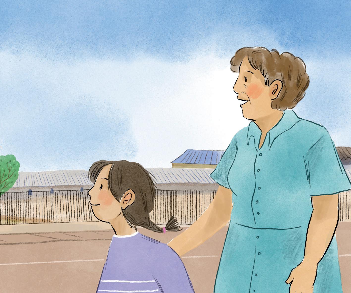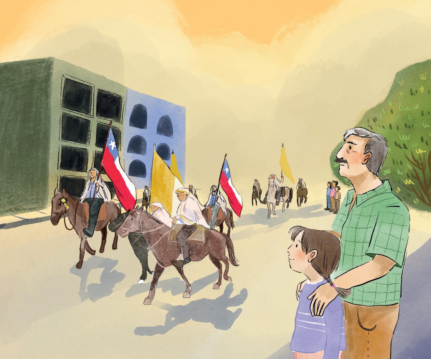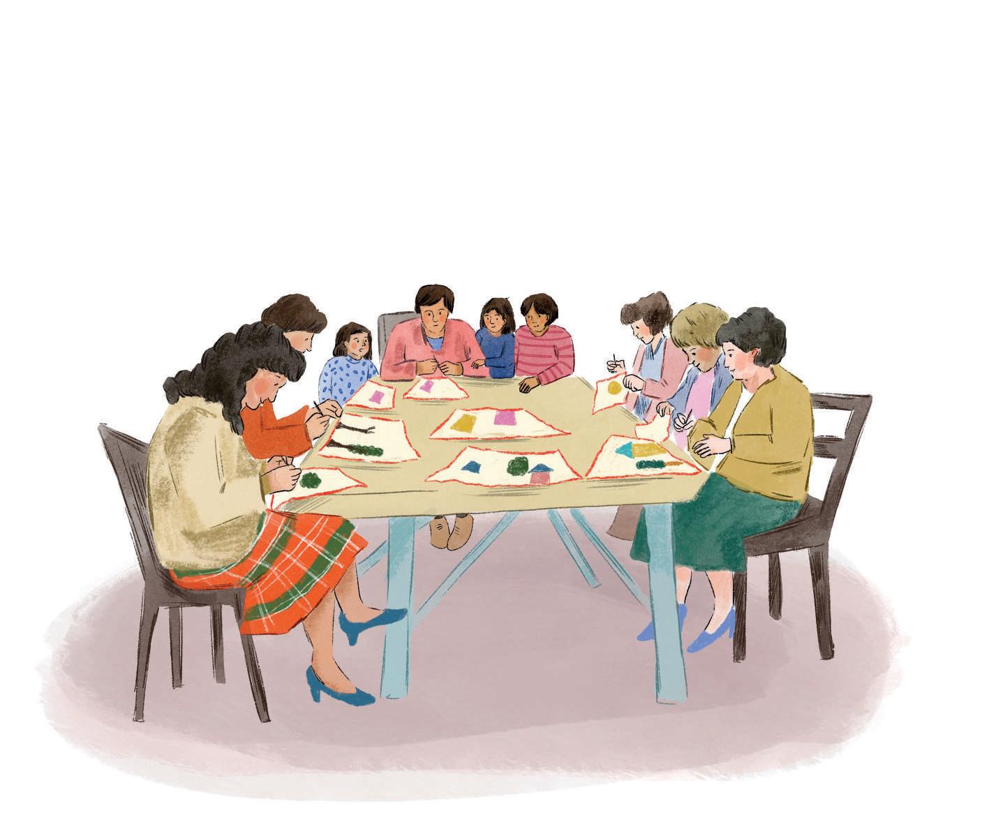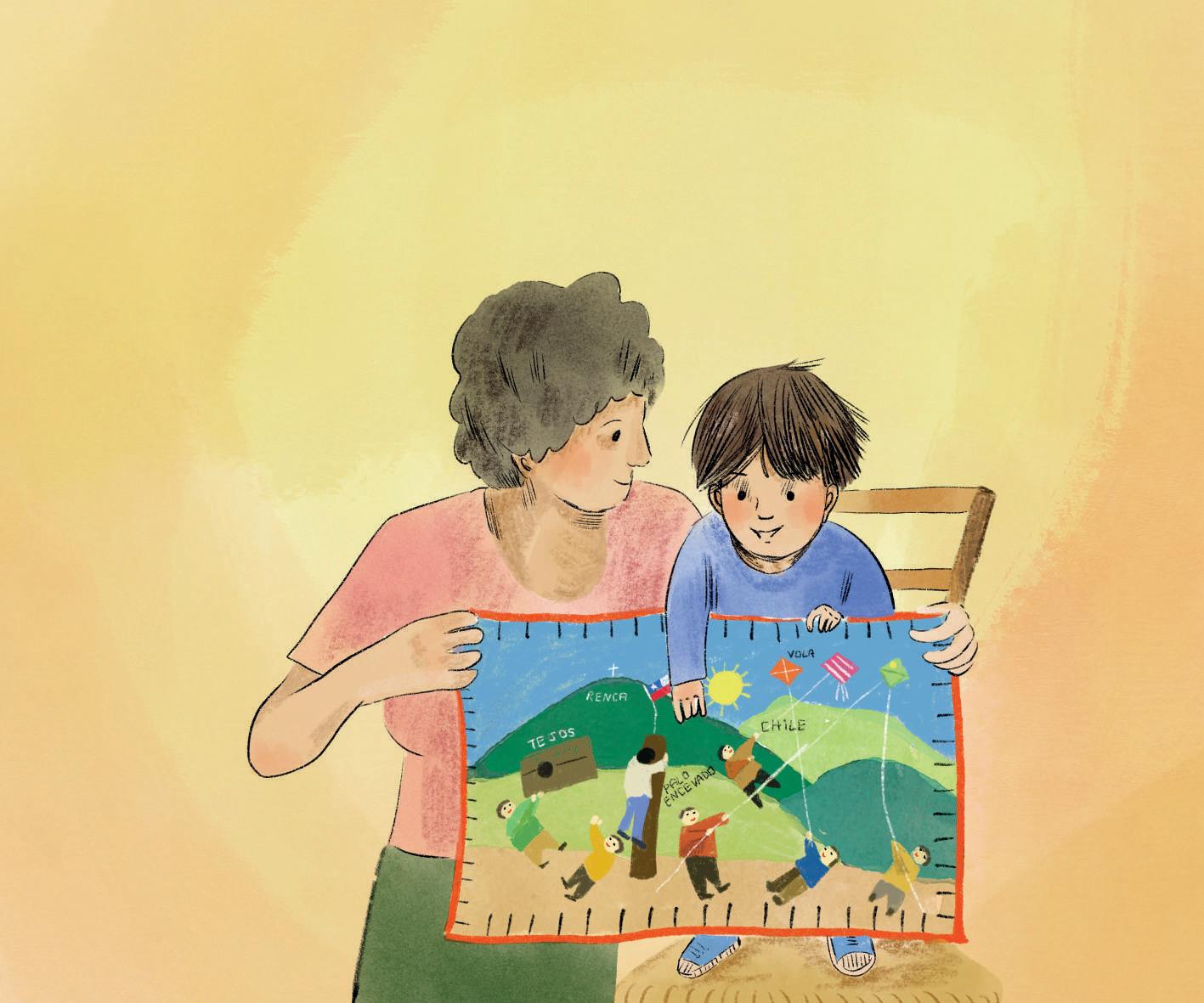 La familia de mi mamá vive en Renca hace muchos años. Mi abuelita cuenta que cuando era pequeña eran tiempos muy tristes. No había trabajo y las vecinas se juntaban a cocinar para que todos los niños pudieran comer. Cuando terminaban de cocinar, las vecinas se juntaban a conversar y comenzaron a bordar arpilleras en las que contaban lo que estaba sucediendo.
