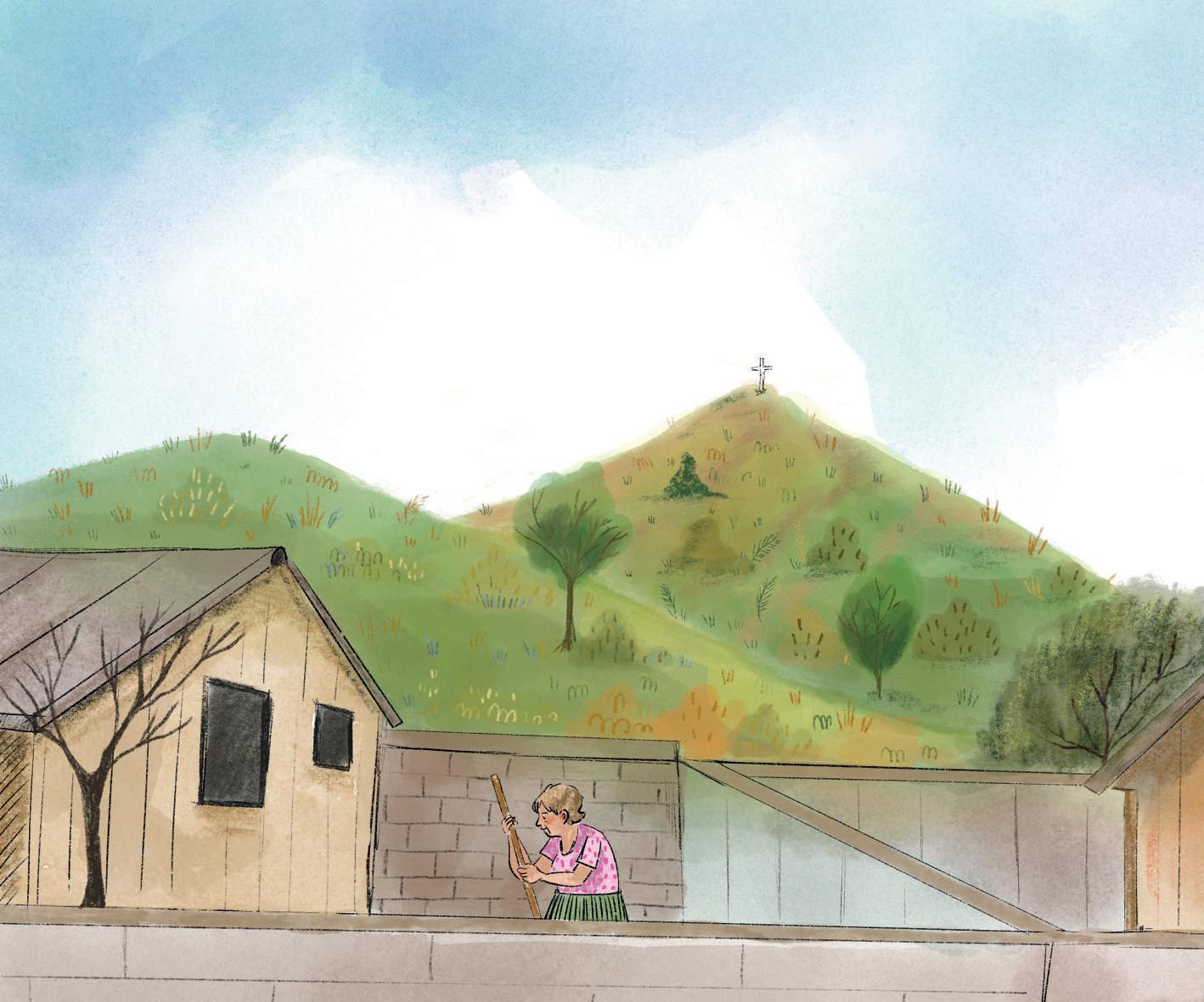 Las arpilleras están llenas de colores y en casi todas está el cerro.