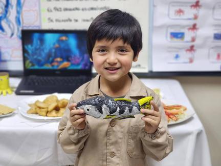 18 de Mayo - Para cerrar las actividades del Mes del Mar, nuestros queridos estudiantes de prebásica de nuestra Escuela G-33 Bernardo de Bruyne Río Verde, junto a su Educadora Maribel Henríquez, realizaron una muestra Gastronómica con productos del mar, y expusieron sus animales marinos elaborados con material reciclado.
