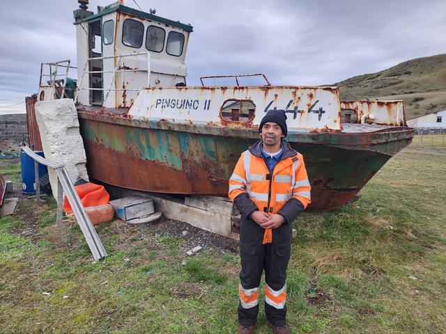 “No, la verdad todos los días son como la misma rutina de siempre. Lo que sí puedo recordar, es que cuando trabajaba en la pesca mi pega era de marino, de tripulante. Y estaba esta lancha (varada a un costado de su casa), el Pingüino II, la que manejé en sus años cuando trabajaba en la pesca. Esta lancha pertenecía a la Sociedad Marítima Fitz Roy. Igual recuerdo con mucho cariño a la Sra. Miguelina y su familia, que me ayudaron muchos en los años que llevo acá Era mi patrona y me apoyó harto mientras estuvo viva Era muy buena gente, aun la recuerdo, incluso ese cuadro (apunta a una foto que mantiene enlapareddesucasa)”