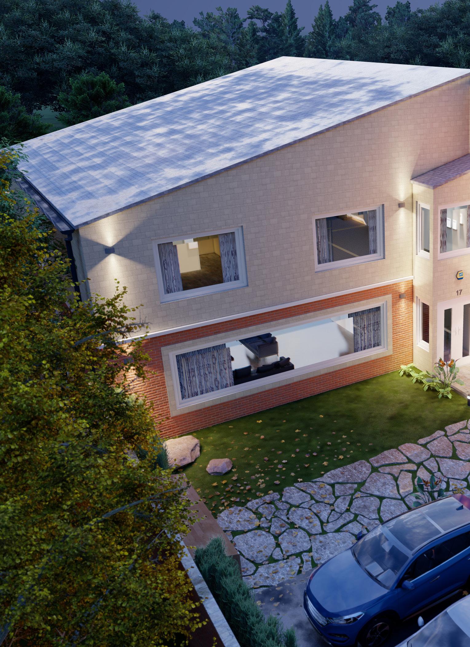 The residence also includes open-plan living and dining areas, a modern kitchen with high-end appliances, and well-appointed bathrooms. The overall design focuses on maximizing space, enhancing flow, and integrating sustainable materials to create a harmonious living environment tailored to the needs of a modern family.
