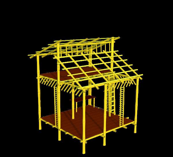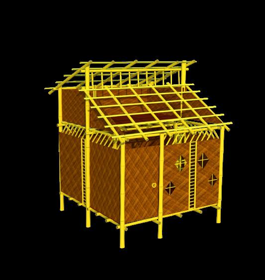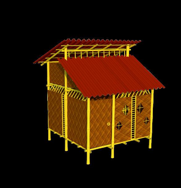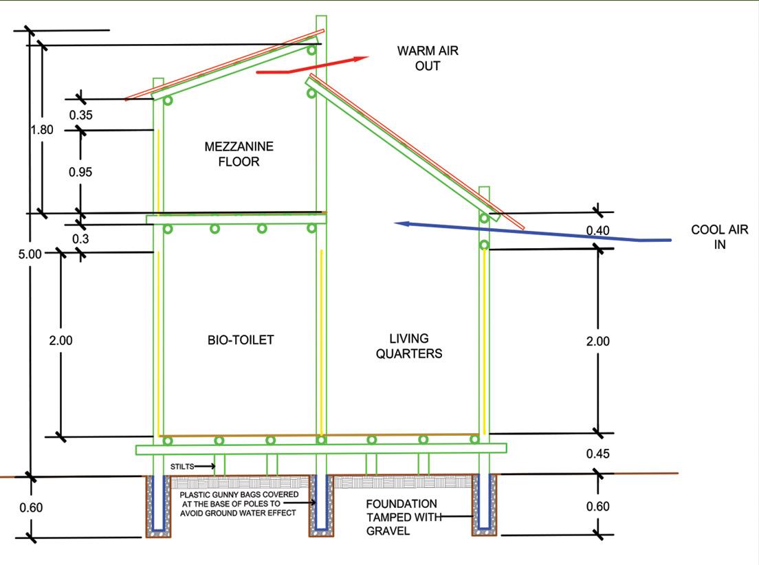 Structure is built with sustainable green materials like bamboo, bamboo ply, tetrapack roofing sheets