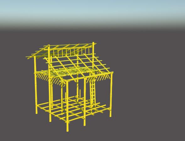 Bamboos are cut into purlins using farming knives