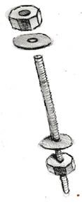 The bamboos are connected using rod,nut and washer (GI) of siz 12 mm in common.