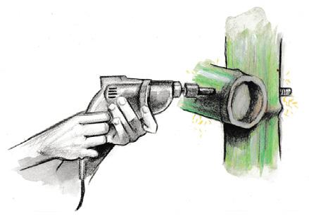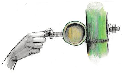 Hole is made in the bamboo using driller of 14mm drillbit