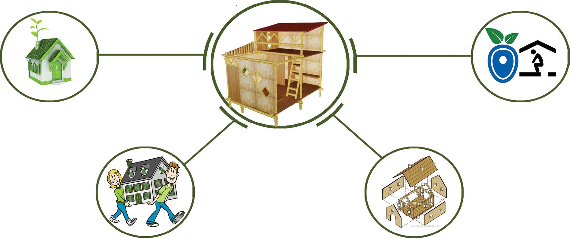 A unit of 3.8m X 3.8m size with a Bio-Toilet and Kitchen which can accomodate 7 people and which can be multiplied with other units and connects to a larger working community. It can be easily assembled and easily dismantled . And fully constructed by ourself.