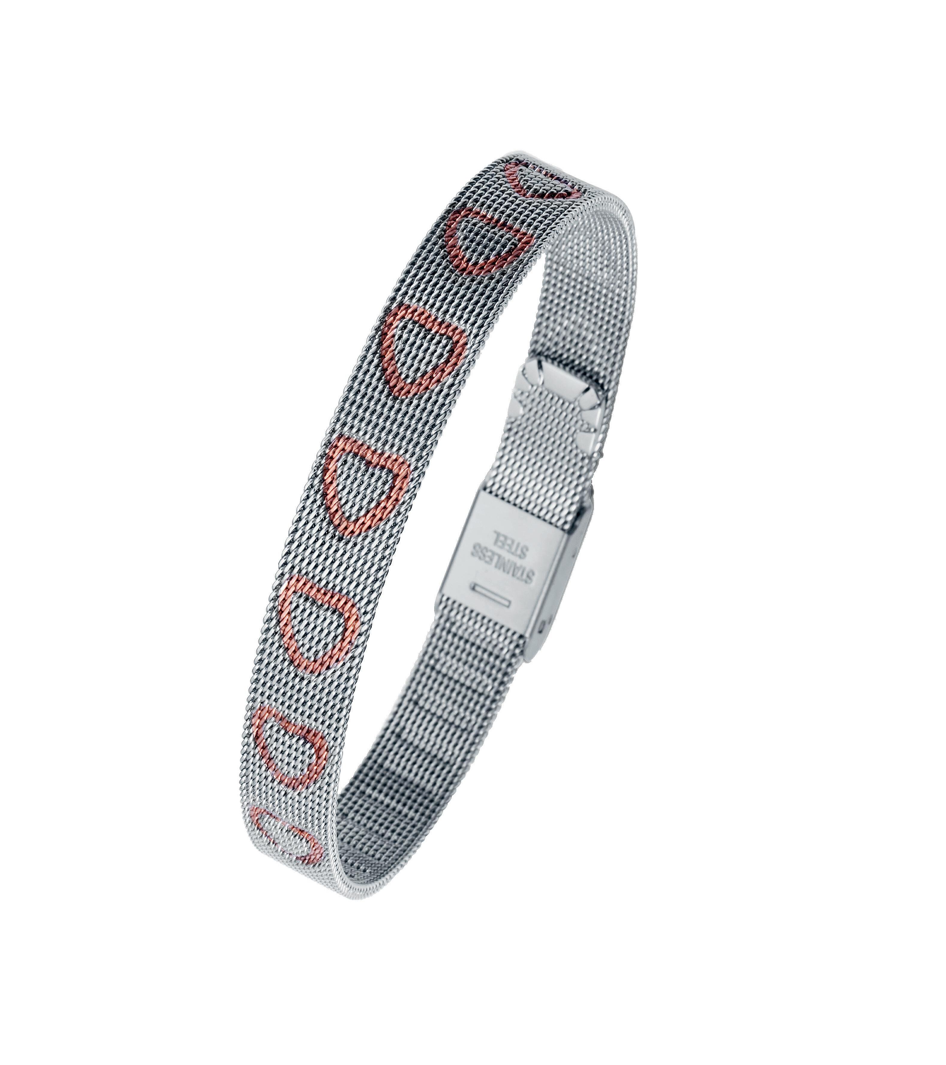 Pulsera de acero con corazones en IP rosado