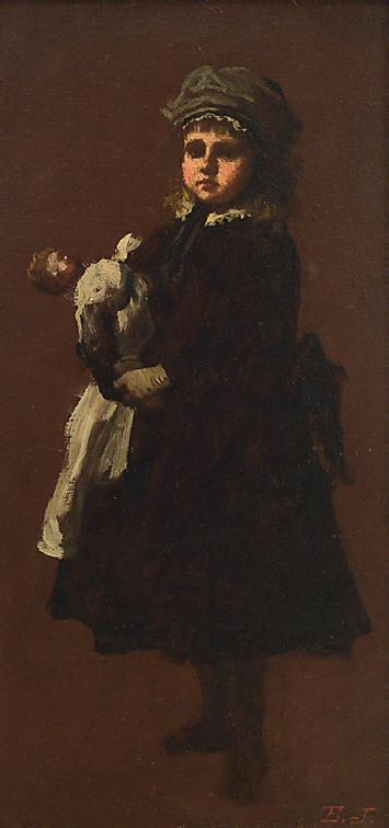 Eastman Johnson, American (1824-1906) Girl and Pet Doll, not dated Oil on board, 22 1/8 × 10 5/8 in.