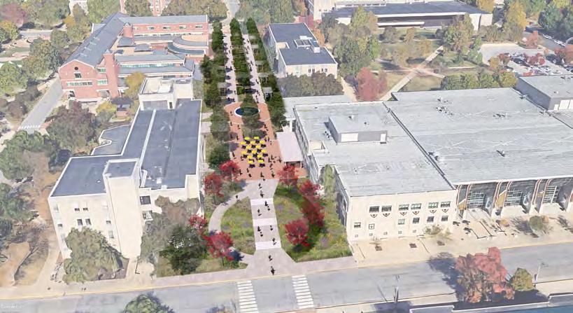 • Arts and Sciences Mall: consider landscape and hardscape improvements, providing a more accessible experience with new seating and collaboration spaces