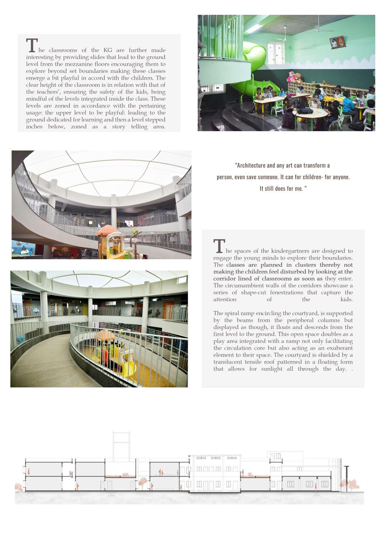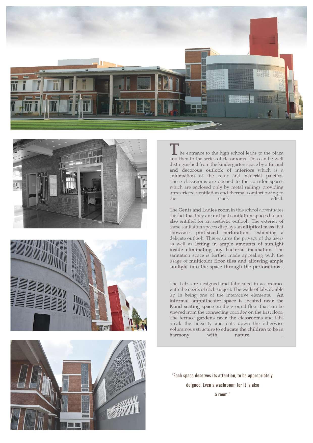 While designing schools, architecture offers immense potential and freedom, which also needs to be accompanied by understanding and observations on how children use and experience space through the years which we have tried to integrate in this school.
