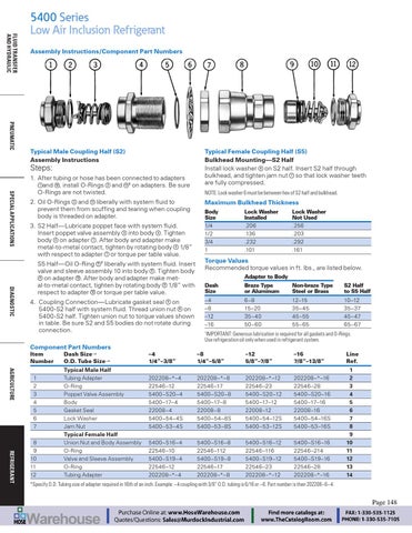 5400 Series Low Air Inclusion Refrigerant Assembly Instructions/Component Part Numbers