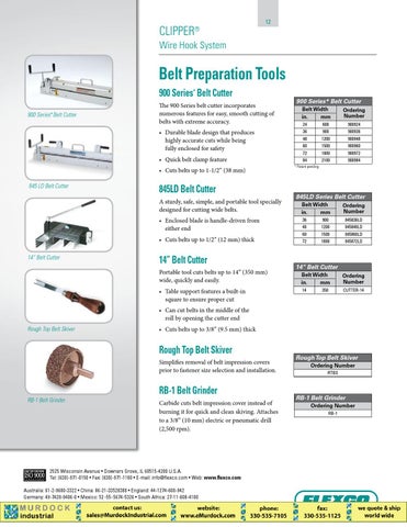 Belt Preparation Tools 900 Series* Belt Cutter 900 Series• Belt Cutter