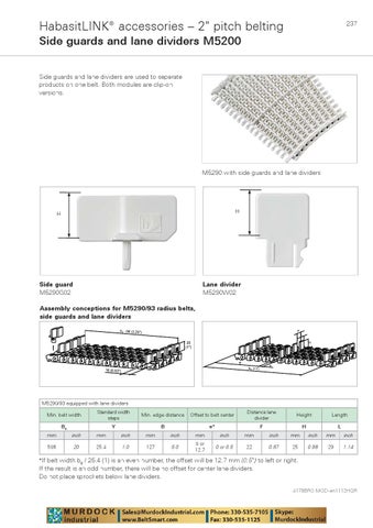 HabasitLINKŽ accessories – 2" pitch belting Side guards and lane dividers M5200 Side guards and lane dividers are used to separate products on one belt. Both modules are clip-on versions.