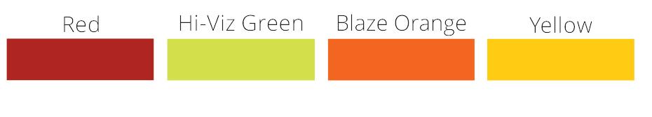 Colors: Yellow, Hi-Viz Green, Blaze Orange, Yellow
