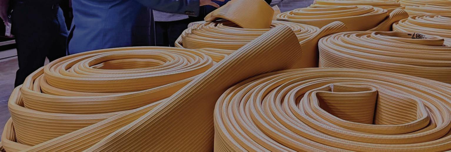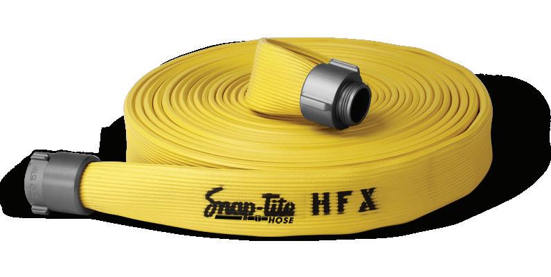 • Lays flat and needs less hose bed space than typical extruded hose.