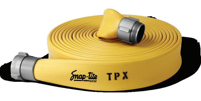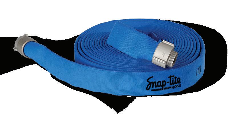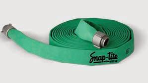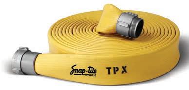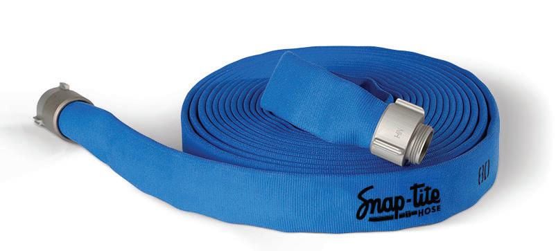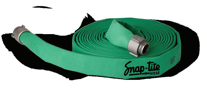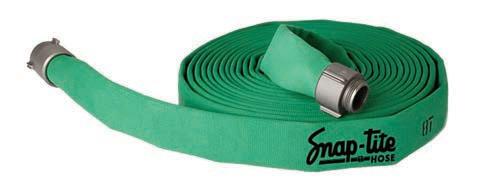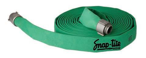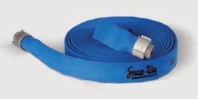 Snap-tite’s 8T™ is a premium quality, industrial grade, double jacketed hose with a lightweight polyurethane liner and a maximum operating pressure of 400 psi (2758 kPa). The outside jacket utilizes a tight weave that is less likely to “catch” while dragging through the work site and helps to reduce kinking at low pressures, keeping the ow constant. The polyurethane liner material meets NSF Standard 61 for potable water use and can be used as a hydrant or water main bypass in an emergency.