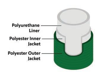 • Double jacketed, polyurethane-lined hose made from 100% high tensile strength polyester yarn.