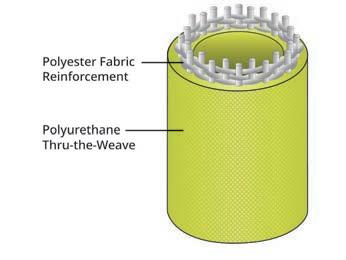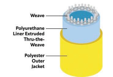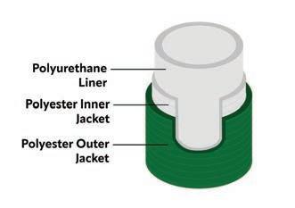 • Woven, polyester jacket construction with an extruded thru-the-weave polyurethane cover and liner.
