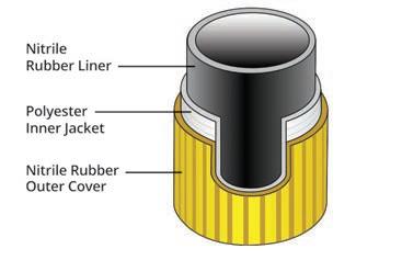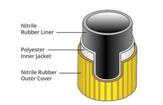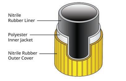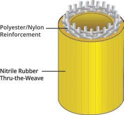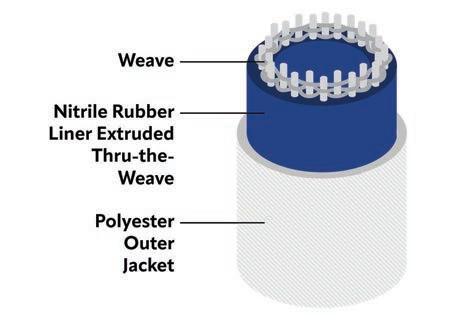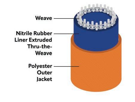 • Extruded thru-the-weave, nitrile rubber construction with a polyester and nylon reinforcing jacket.