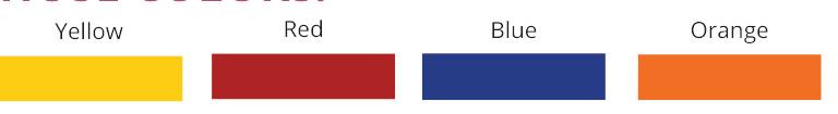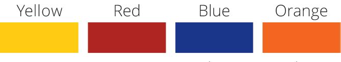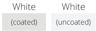 Colors: Yellow, Red, Blue, Orange, Green, White (coated), White (uncoated)