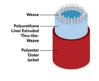 •Patented double jacketed hose made from 100% high tensile strength polyester outer jacket with extruded thru-the-weave polyurethane inner hose. NO ADHESIVE IS USED. The lining will never delaminate.