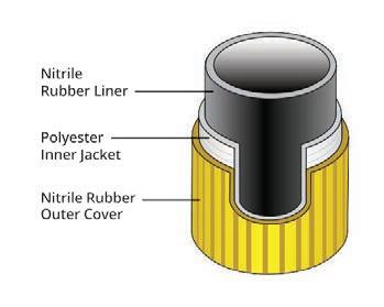 • 3-ply rubber hose with both the cover and liner made of heavy-duty nitrile rubber and high tensile strength polyester for maximum durability and exibility.
