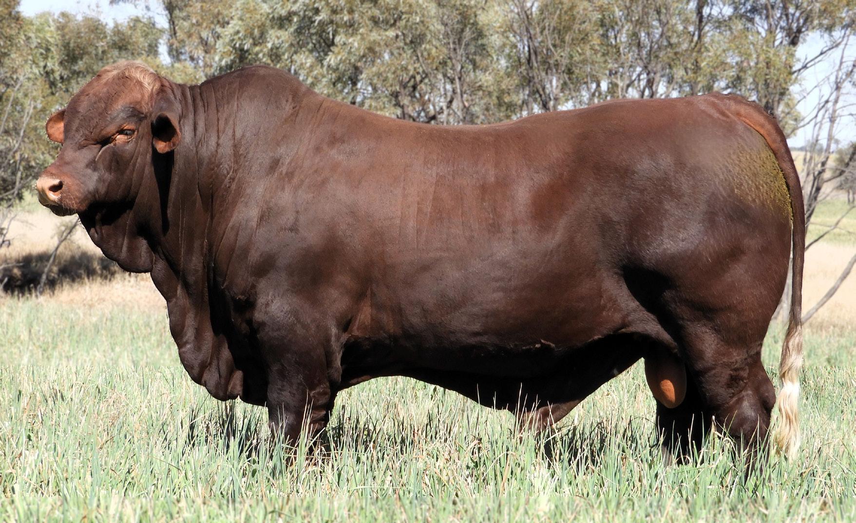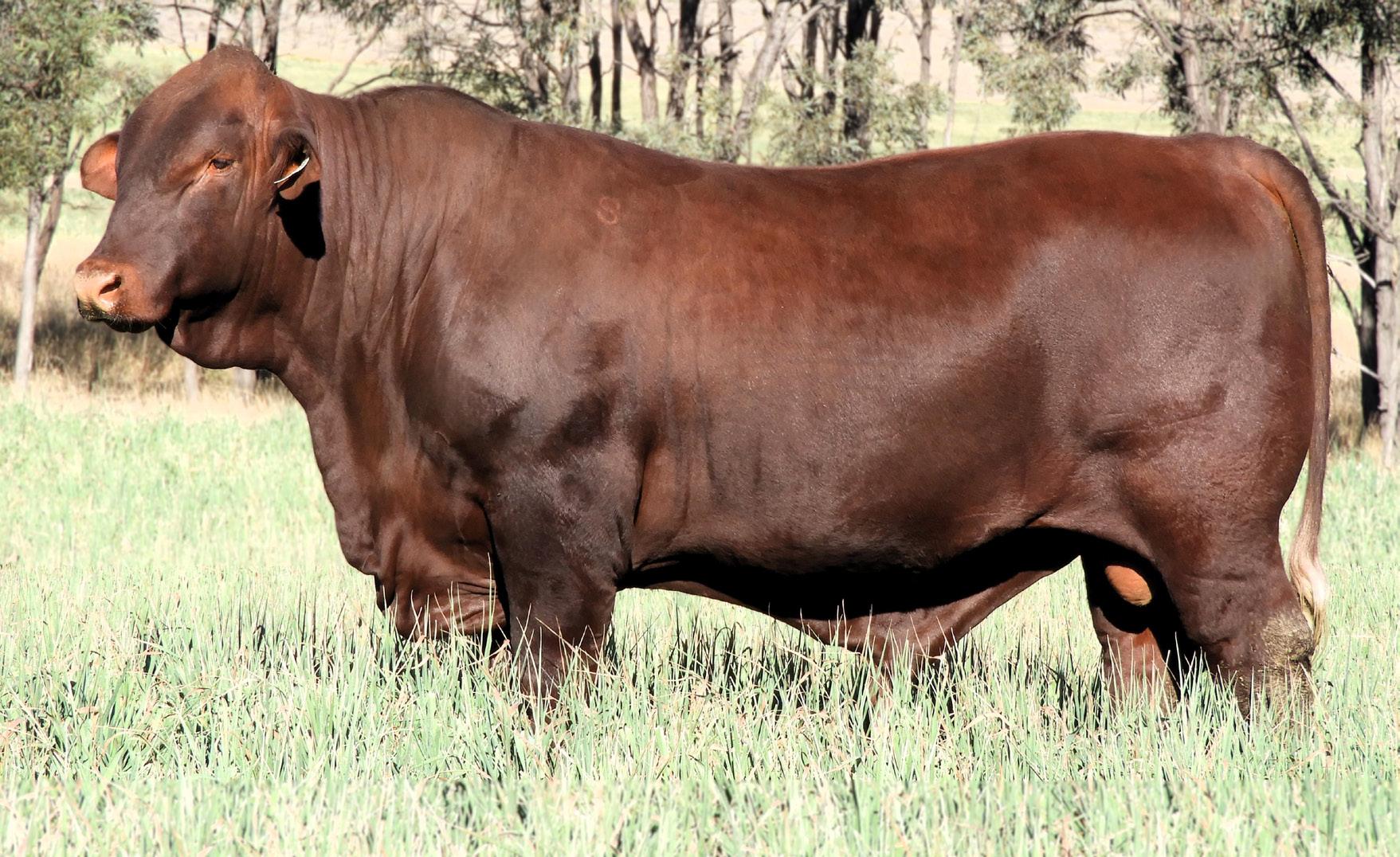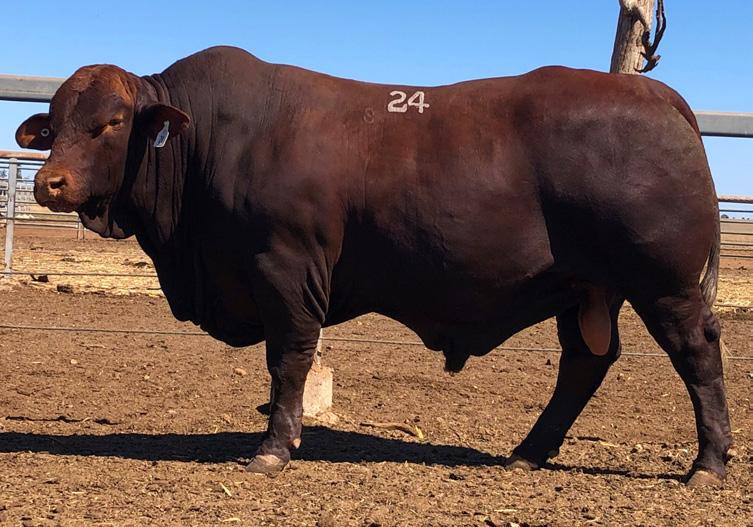 We had the privilege of using S122 (P) for his first season. Only a young bull at the time, he held up exceptionally well. There was so much to love about this bull, including his bone, thickness, depth, temperament, coat and head. S122 (P) has reportedly grown into a very large bull despite going to work at a young age. We are so pleased with this bull’s offspring we struggled to choose just one son to retain for ourselves. Beef 2024 Grand Champion Santa Gertrudis Male, Murgona Raider (P), sired by S122, will commence stud duties at “Burradoo” in November. Stable mate, Murgona Reginald (P), who stood second to him in the 19 & Under 21 month class at Beef, will be regrettably offered as Lot 2. A total of 8 S122 (P) sons have been catalogued for this year’s sale.