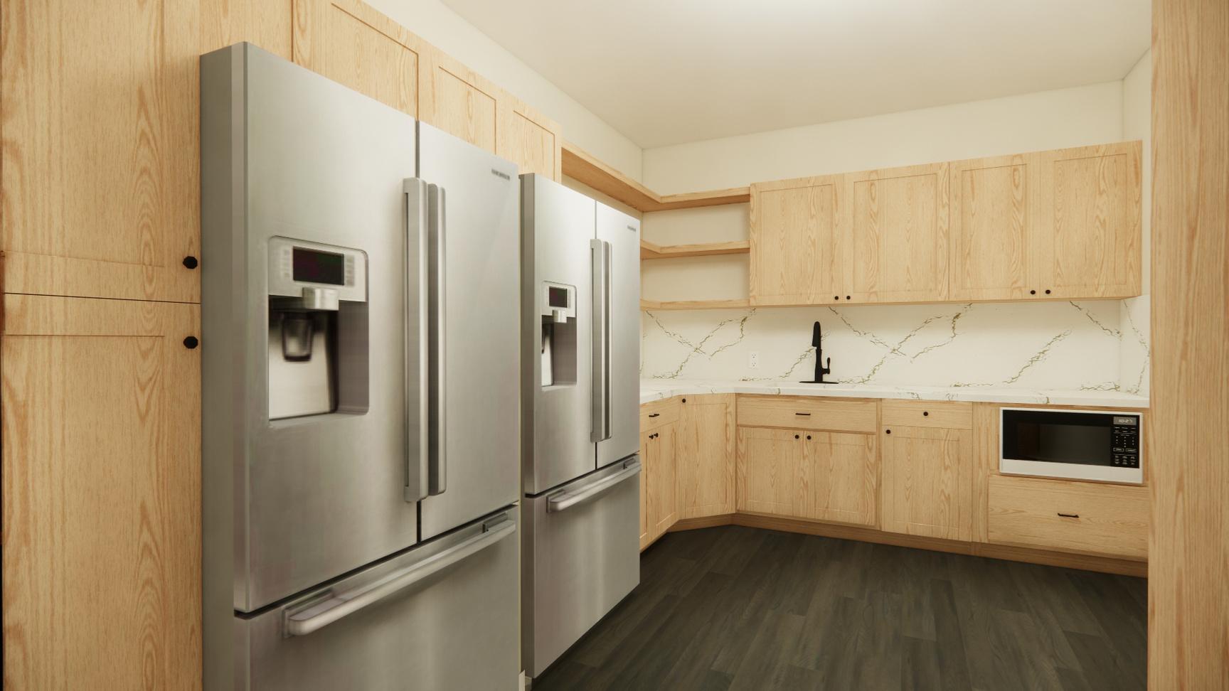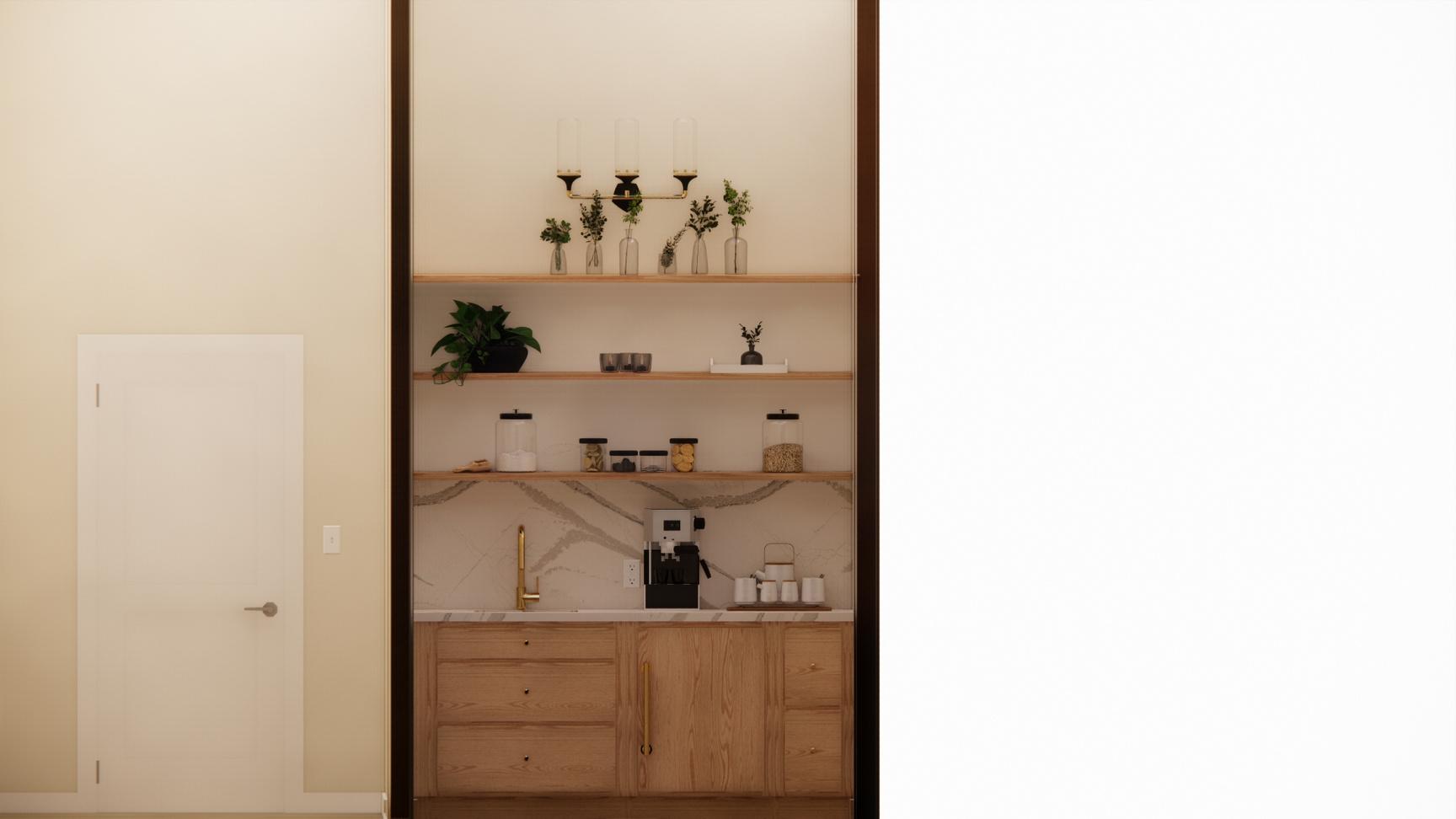 Microwave located in the pantry to create more space for storage in main kitchen.