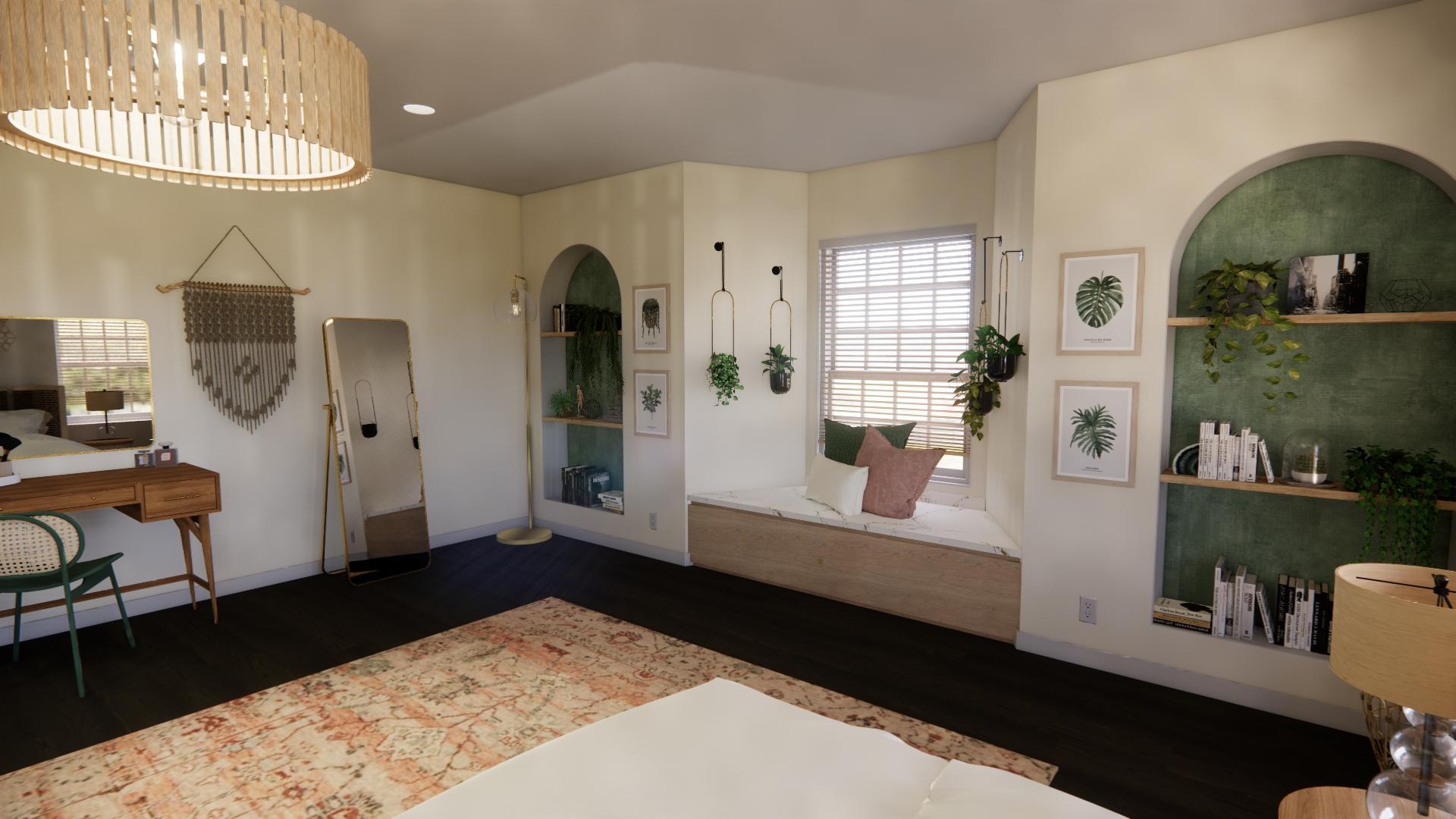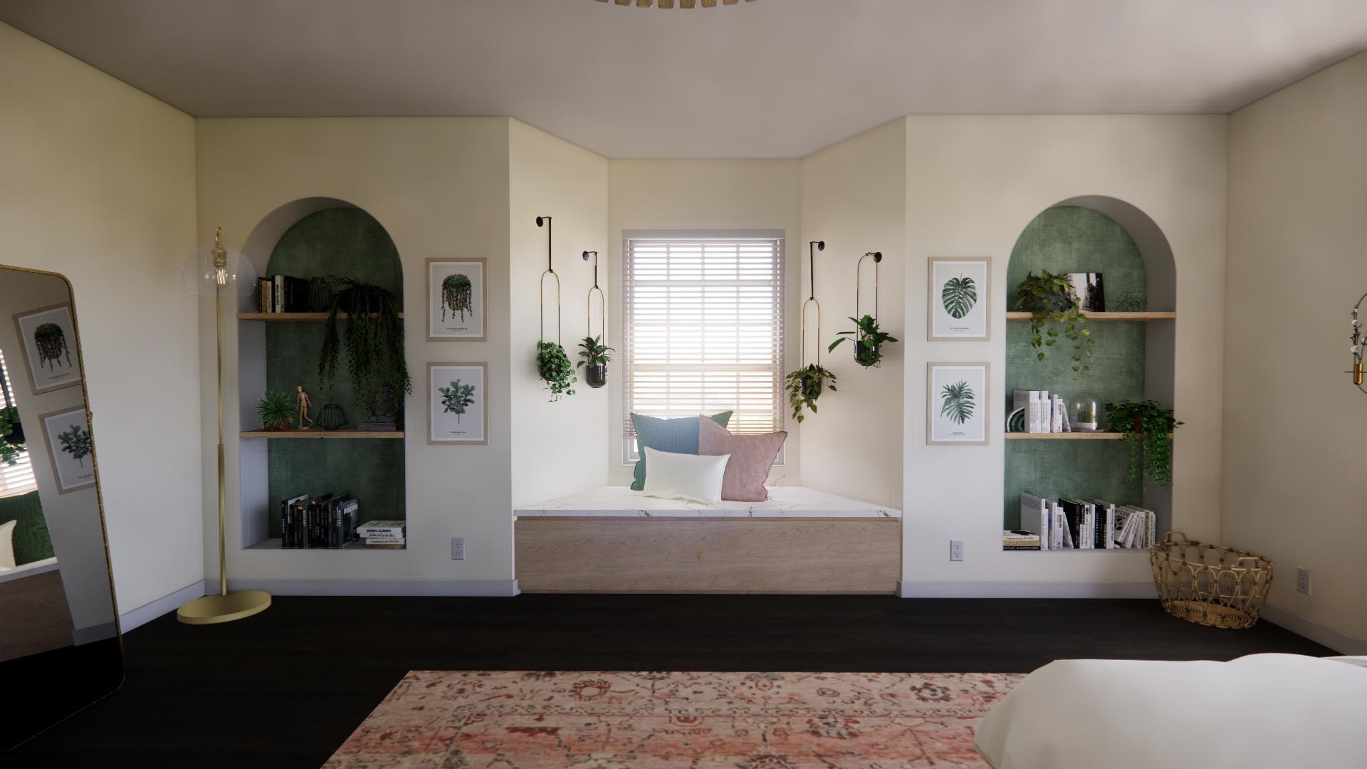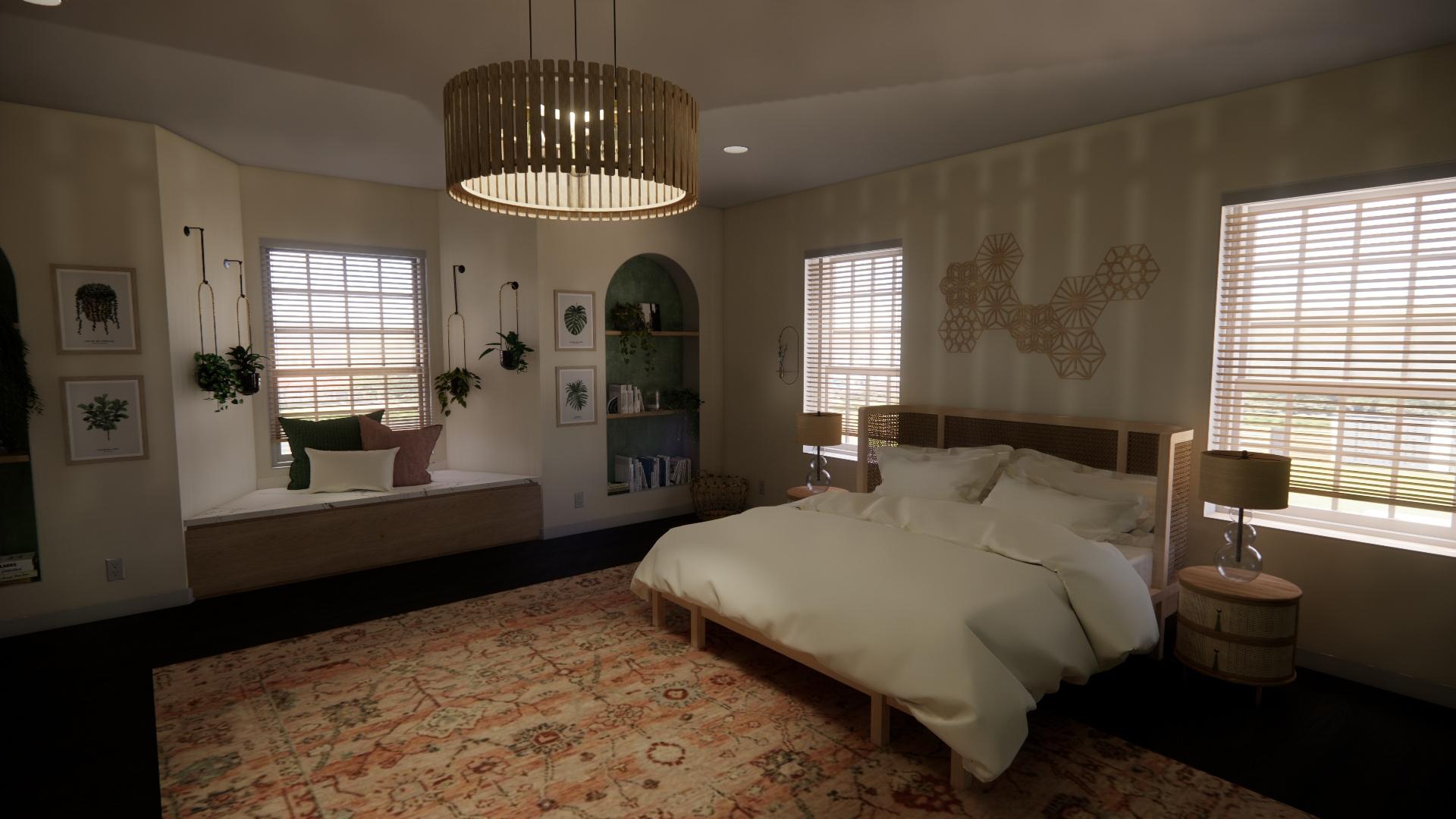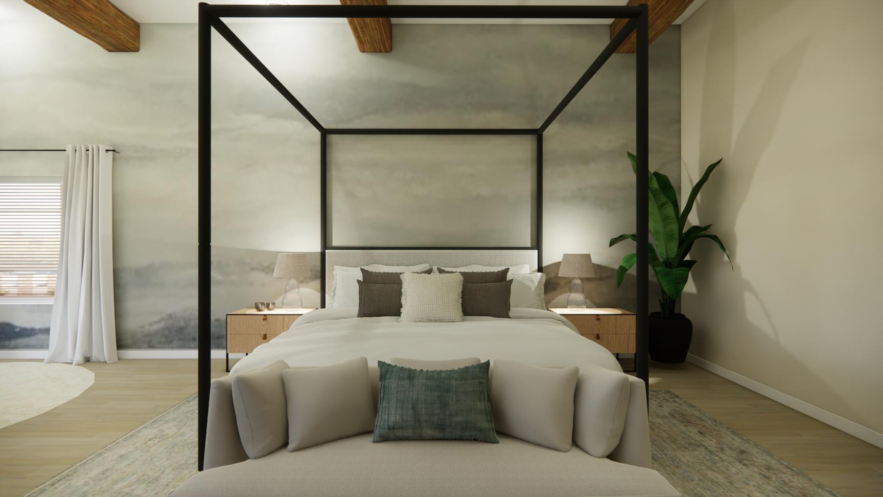 A beautiful wallcovering was sourced for the primary to enhance calmness.