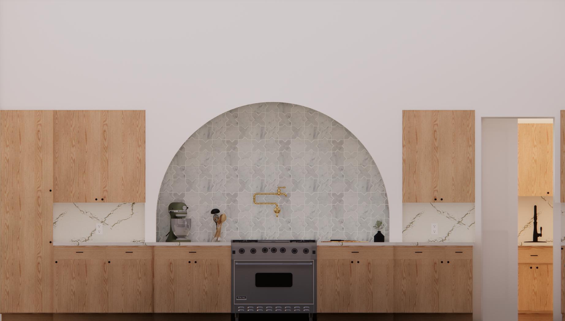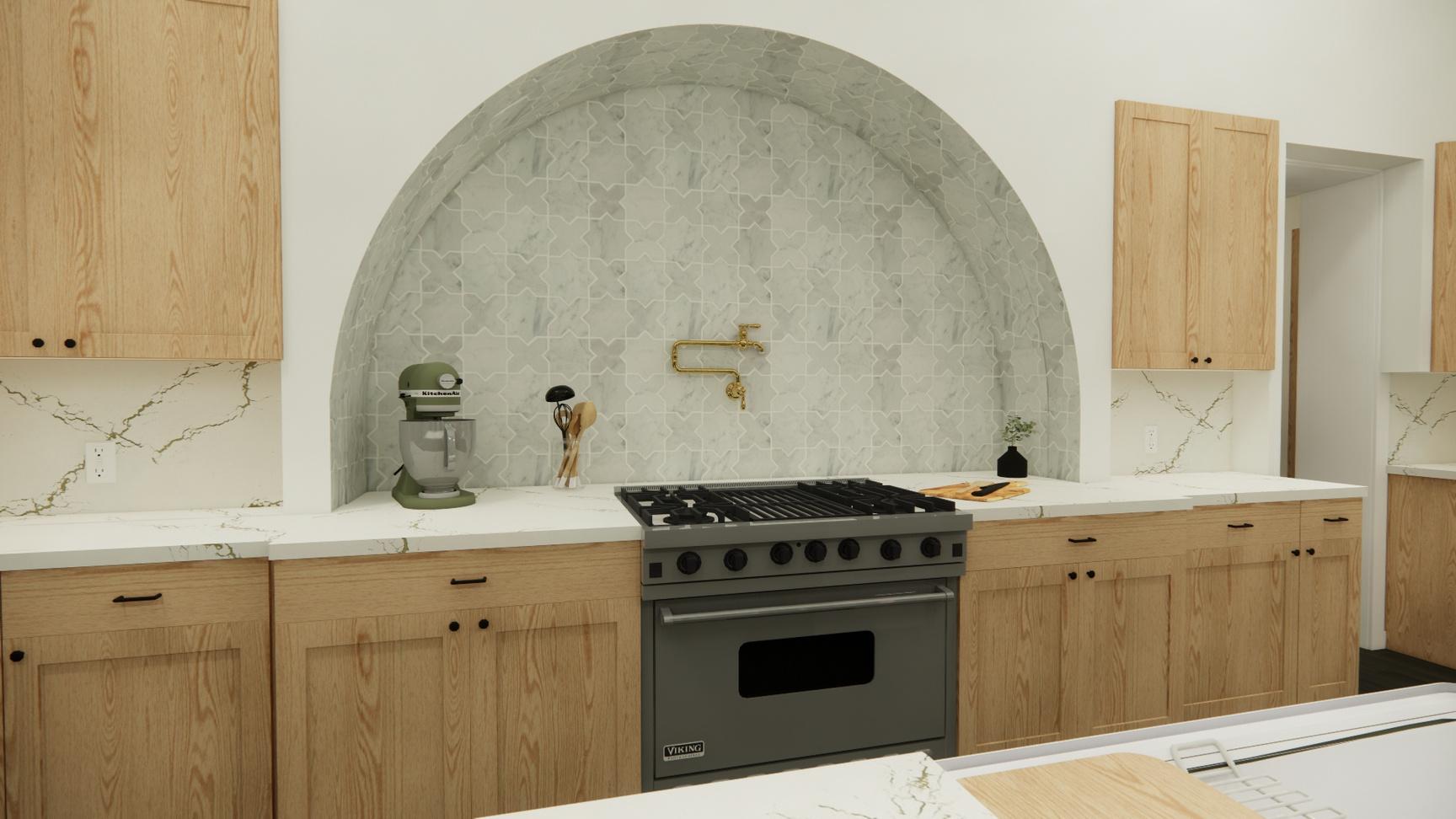 A beautiful arched niche was add to create a designated space for the range, and space to cook.