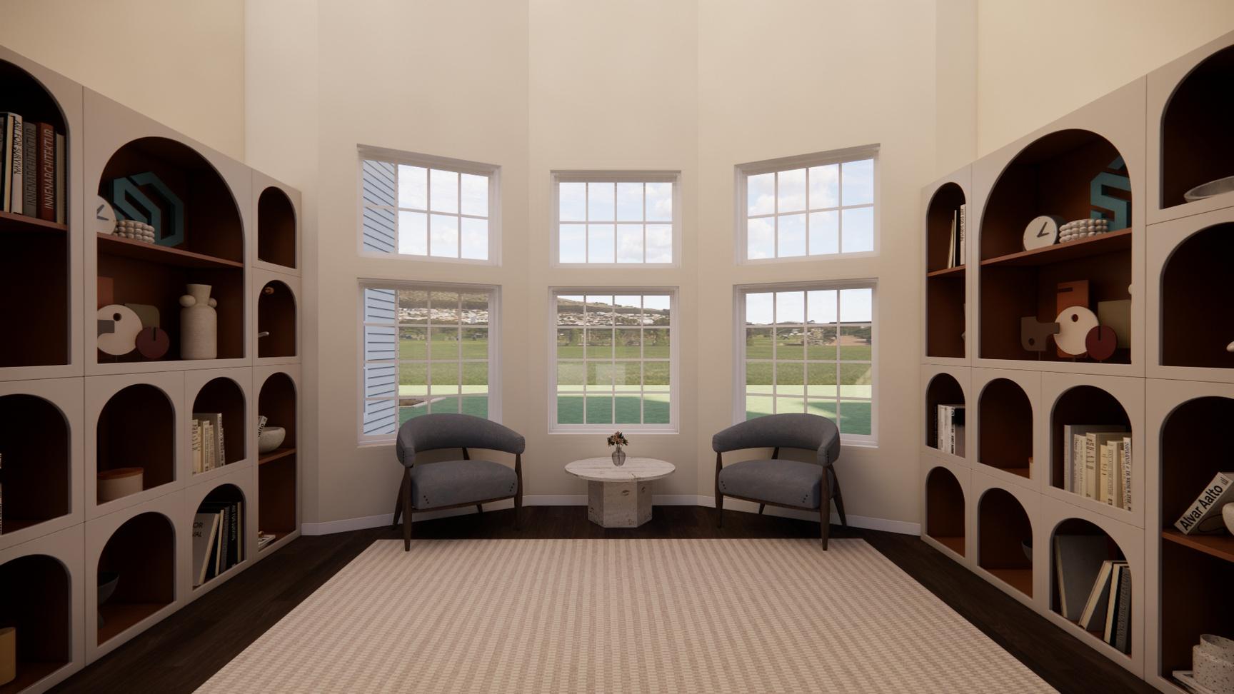 Large windows and shelving was added in the sitting room to create a formal and calm feel.
