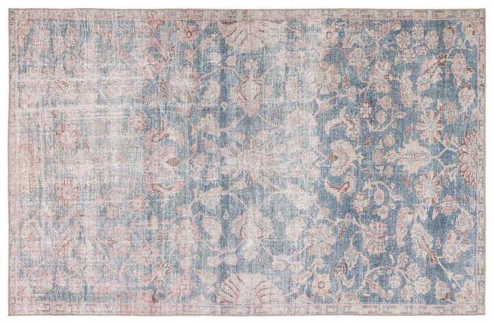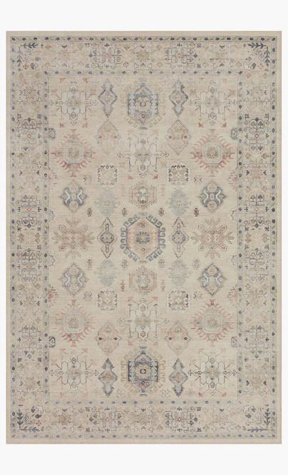 A gorgeous rug from Loloi and simple wallcovering from HollyHunt create a cozy, yet lively feel.
