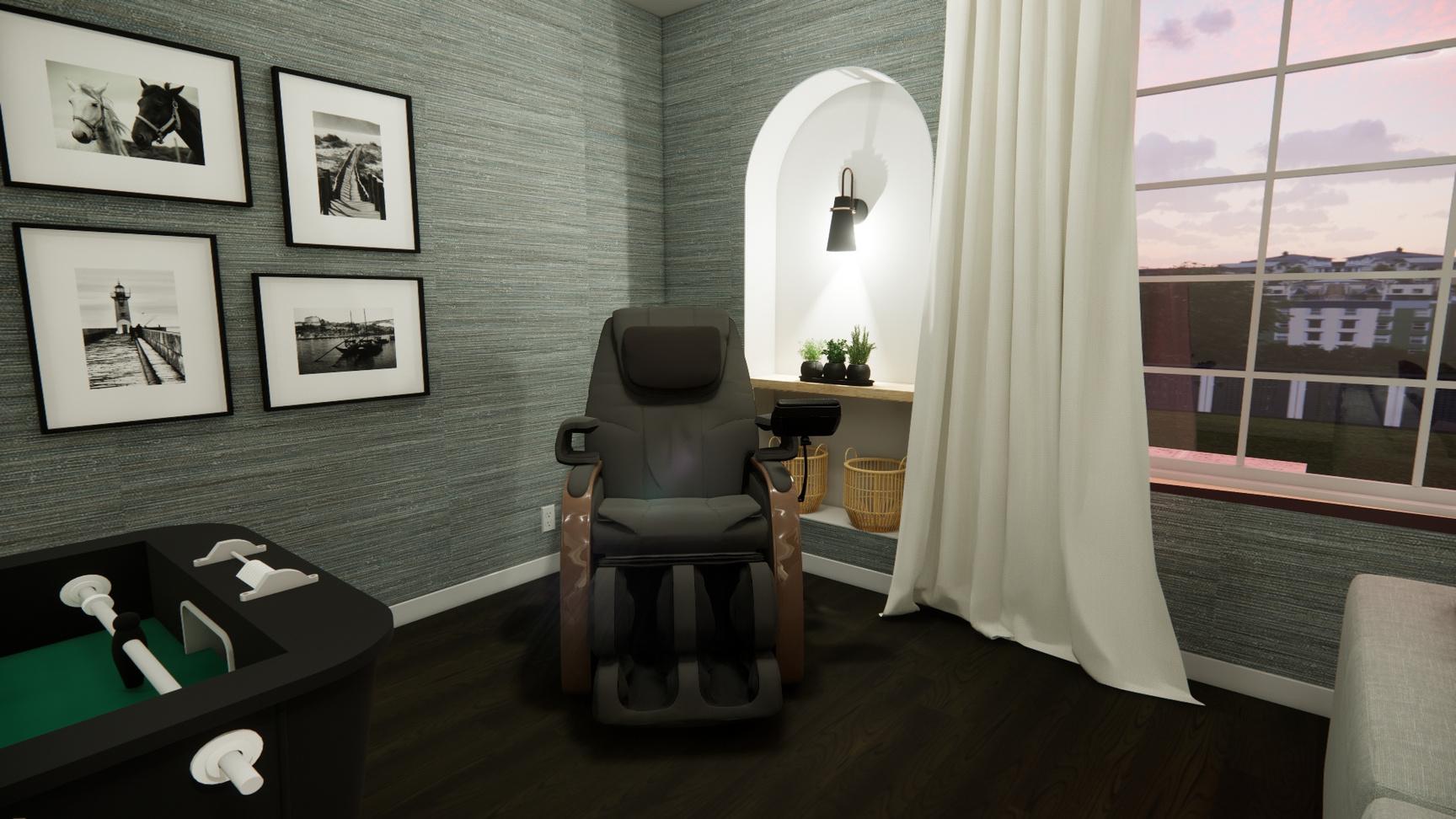 A zero-gravity massage chair was added in the game room upon request of the family.